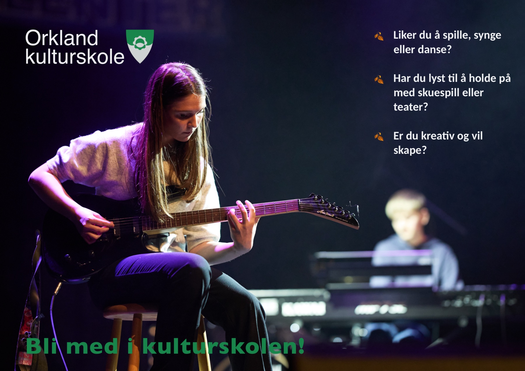 Innimellom foregår det mye spennende i Orkland kulturhus, og er du elev i kulturskolen får du billigere billett på utvalgte forestillinger og konserter på kulturscenen. Da betaler du kun 150,- kroner for billetten din. Har du voksne med deg, må de betale vanlig pris. Rabatterte billetter kan ikke bestilles på nett, men må kjøpes via servicetorget på rådhuset; enten ved å møte opp og kjøpe der, eller ved å ringe og reservere. Tlf. 724 67 300.